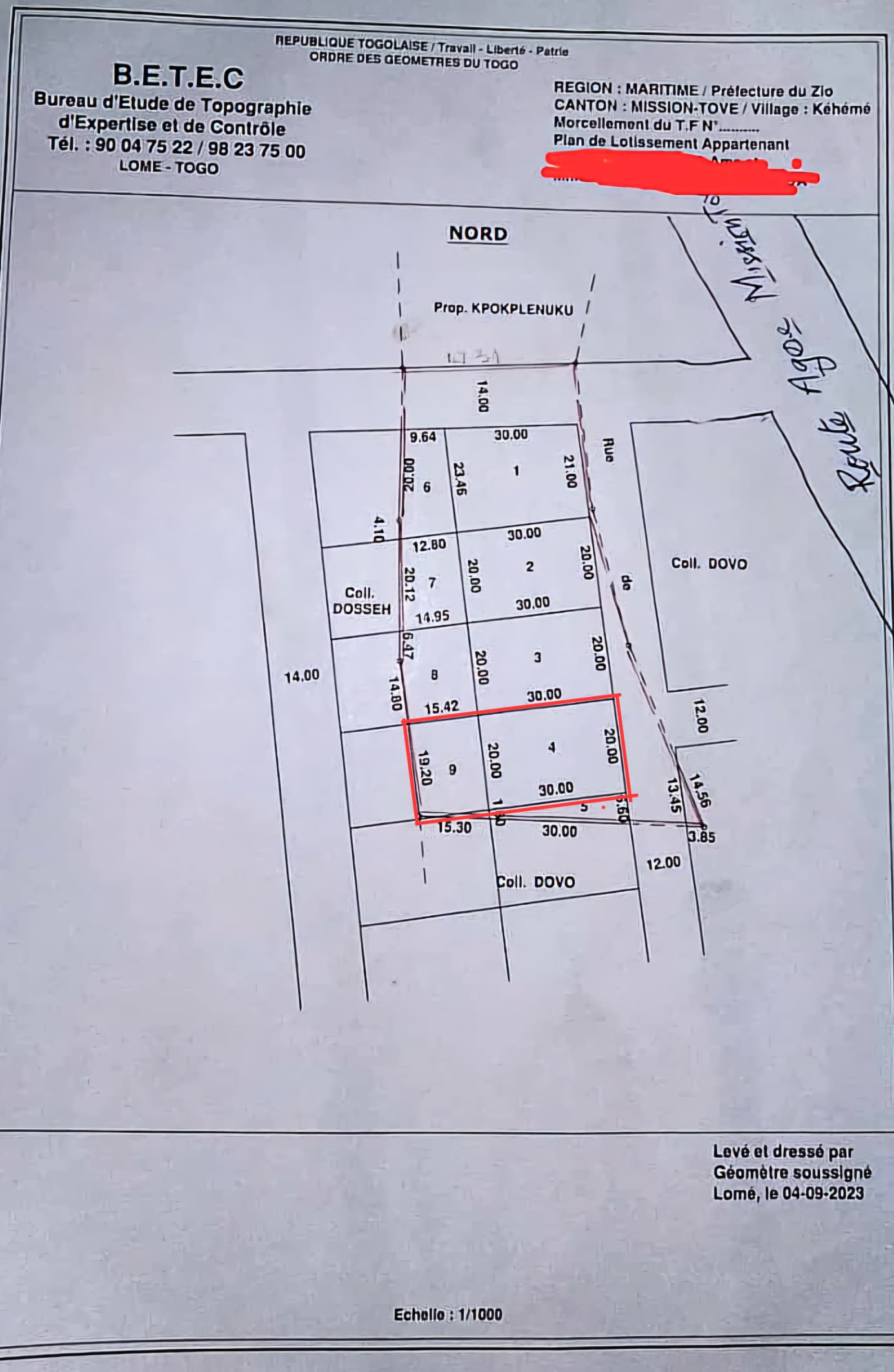 Baguida-AfanoukopéTerrain 1 lot et démi ( soit 900m2 ) ( 20X45) à déduit d'un domaine de 5 lots collés avec titre foncier global ( bornage deja fait ) ... très bien situés dans un milieu propre et Résidentiel à 300m de la grande voie de Mission Tové à Agoè légbassito , non loin de la pharmacie M'BA ...