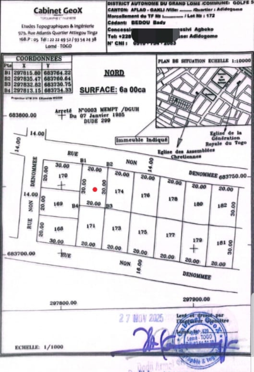 Baguida-AfanoukopéTerrain 1 lot avec un nouveau tampon OTR + Avis Favorable ... tres bien situé à 200m derrière Ramco Carrefour Lapampa à adidogomé Franciscain...