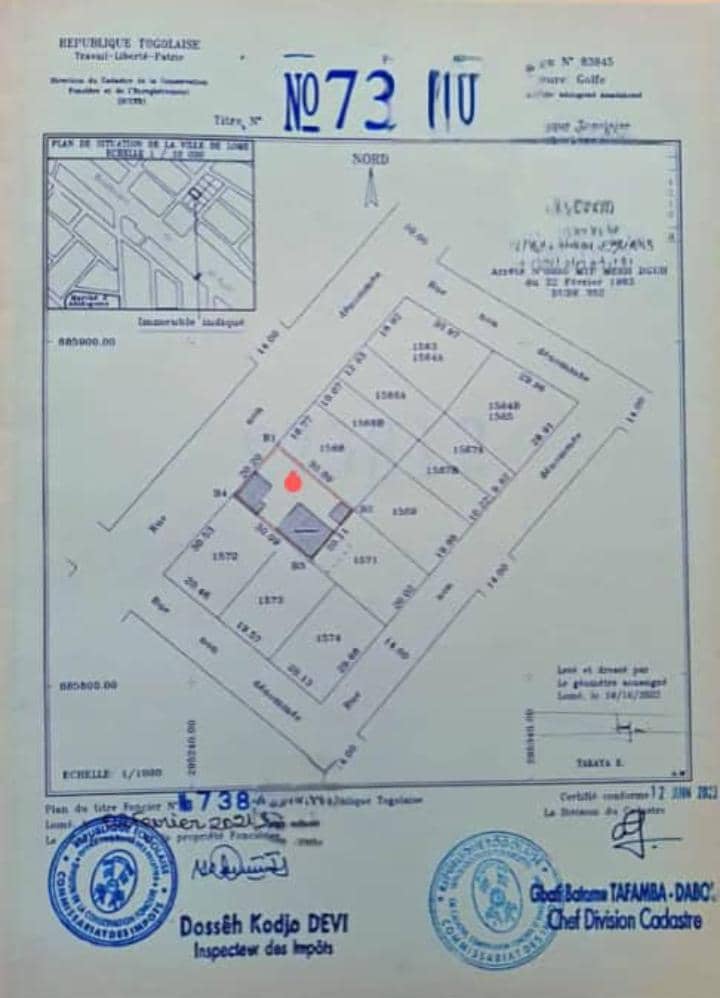 Baguida-AfanoukopéTerrain 2 lots collés avec 2 titres foncier ..... Très bien situés seulement à 100m du goudron et ouverts sur 2 voies dont une de 20m...
