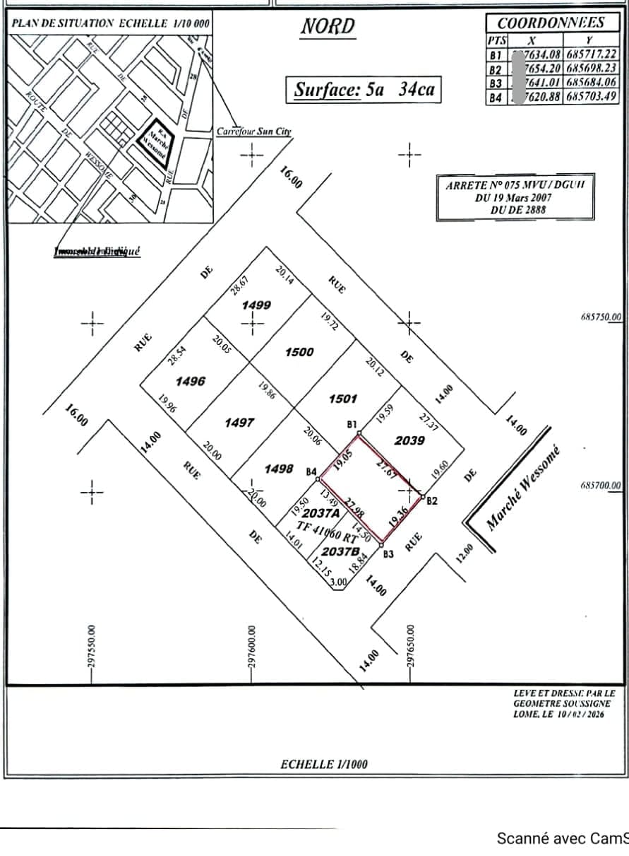 Baguida-AfanoukopéTerrain 1 lot cloturé ( soit 534m2 ) avec titre foncier global + tampon OTR ... très bien situé en plein centre ville juste derrière la cloture du Marché D'Avédji et entouré de très belles maisons, un quartier propre et calme ...