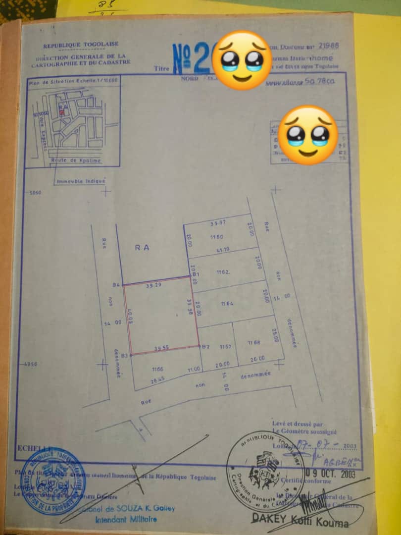 Baguida-AfanoukopéTerrain 2 lots et démi collés cloturés avec titre foncier ..très bien situés en plein centre ville juste à 200m du goudron et à 100m de la grande voie à amadahomé ... idéal pour toutes activités commerciales ..