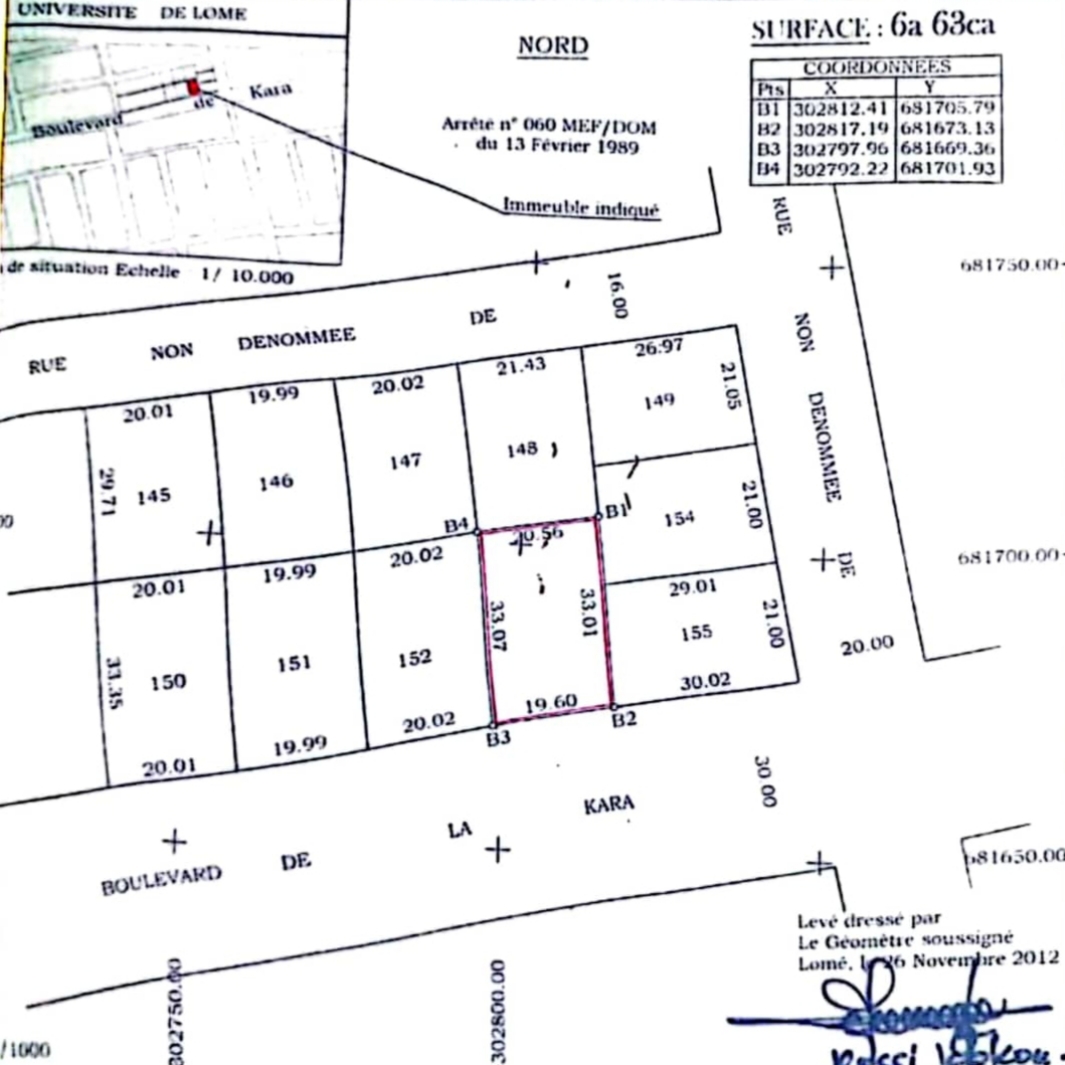 Baguida-AfanoukopéTerrain Stratégique de 1 lot cloturé ( soit 663m2 ) avec titre foncier ... magnifiquement situé en Bordure du goudron du Grand Boulevard de la Kara... un emplacement idéal pour tout projet ...