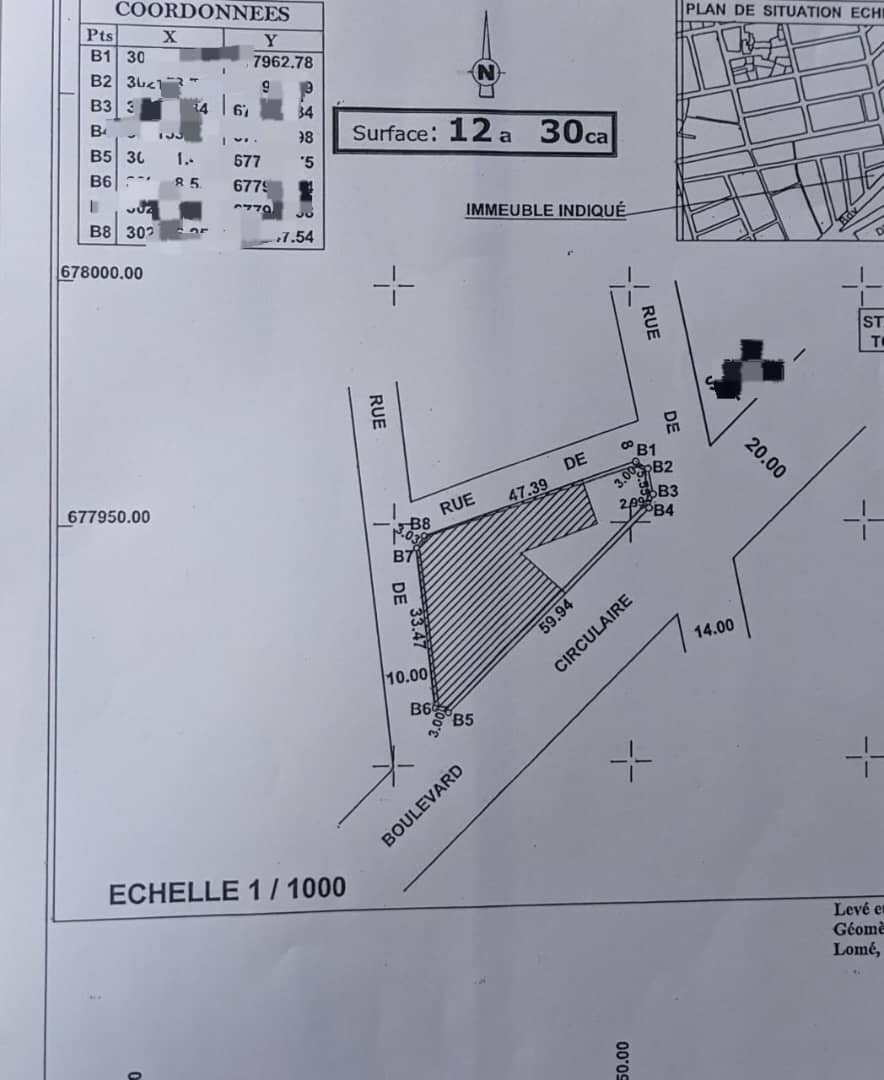 Baguida-AfanoukopéTerrain Stratégique de 2 lots collés clururés avec titre foncier Magnifiquement situés en Bordure du Goudron Du Grand Boulevard Circulaire du 13 janvier à Nyékonakpoè et ouverts sur 3 différentes voies ... comportant un immeuble constitué de Plusieurs bureaux , Boutiques et Appartements ...