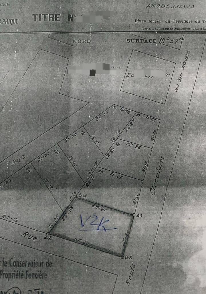 Baguida-AfanoukopéTerrain 1 lot 3/4 avec titre foncier ( soit 1057 m2 ) ... Très bien situé en plein centre ville sur la Nouvelle voie en Construction à Akodésséwa face à ETOCOTRAN.... un emplacement pour tout projet ...