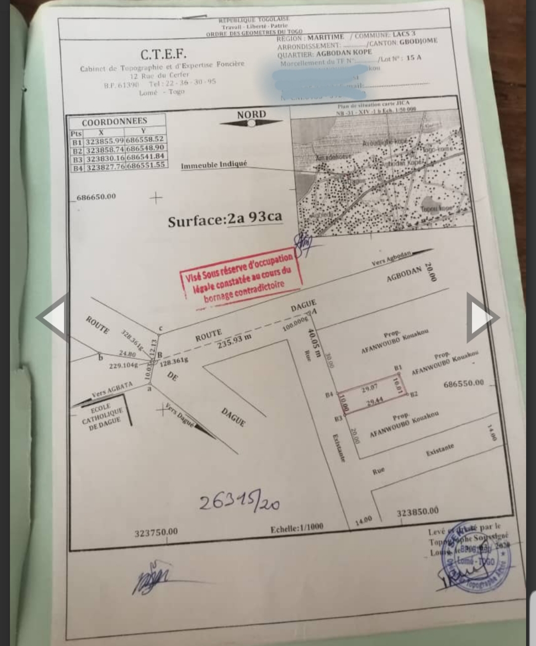 Baguida-AfanoukopéTerrain démi lot cloturé avec un nouveau tampon OTR..... Très bien situé en plein centre ville à Dagué entouré d'habitations juste derrière le CEG D'Agbodan et non loin de l'église Catholique dans un coin très calme... comportant quelques briques pour débuter les Travaux ...