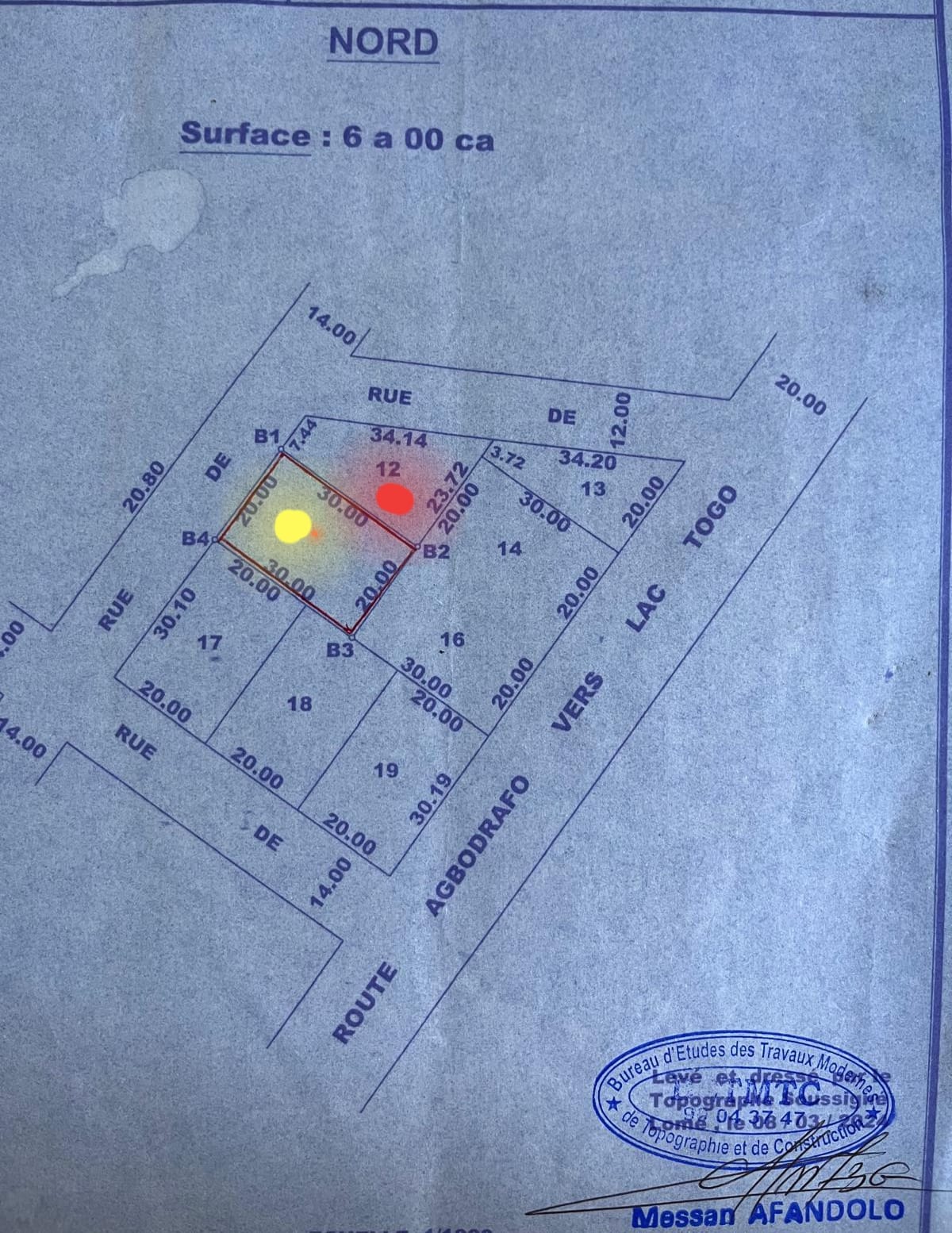 ANEHO-HABITATTerrain 1 lot 3/4 cloturé sur 2 cotés avec nouveau tampon OTR .... Très bien situé à 100m du Lac-Togo dans la zone Du ROYAUME de King MESSANH dans une zone Résidentiel en angle de rue ...... egalement entouré de 3 hotels et restaurant .... idéal pour une Habitation paisible..... voir plan , Lot 12 et 15