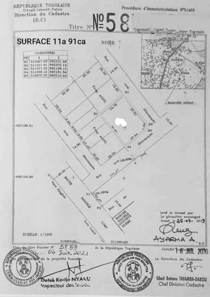 ANEHO-HABITATTerrain 2 lots collés cloturés avec titre foncier ...très bien situés en angle de rue à djagblé-klémé , non loin du marché et à 200m du goudron Lomé-Vogan RN34 avec accès direct...