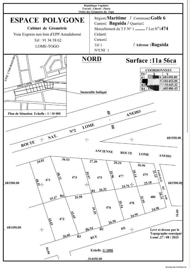 ANEHO-HABITATTerrain 2 lots collés avec titre foncier global ... ( soit 1156m2 ) tres bien situés du coté plage de Baguida juste derrière la station Somayaf à peine 400m du goudron...
