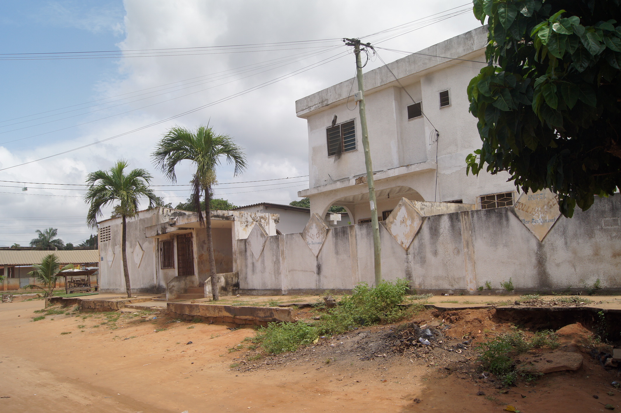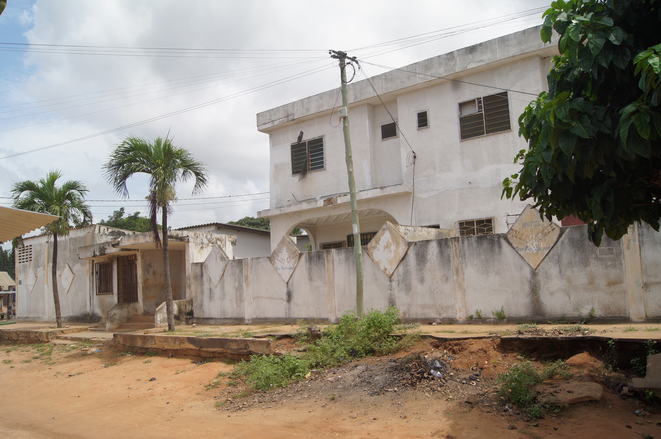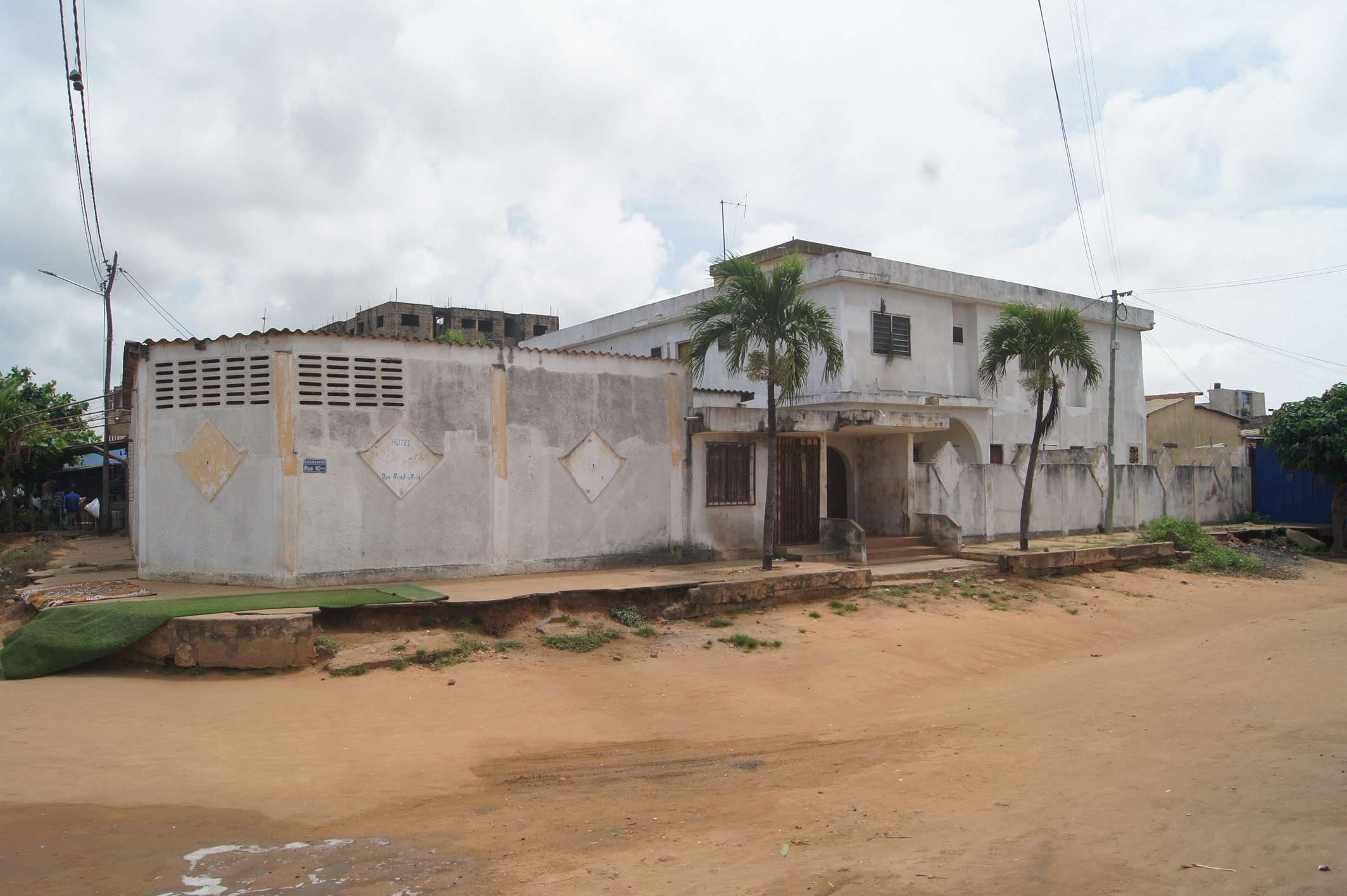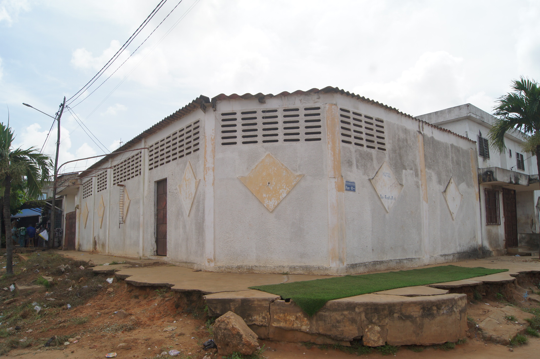 --13 chambres wc douche interne chacune .... 2 grands bureaux ( salon ) une cuisine ... une buandérie ... un magasin ... un Bar interne ... une salle de réception... une cabine interne .. une toilette visiteurs ... une grande cour ( place des fètes ) ... un Bar public ... une piste de dance ...et une cabine ... garage pour 2 voitures... ( à Rénover complètément )