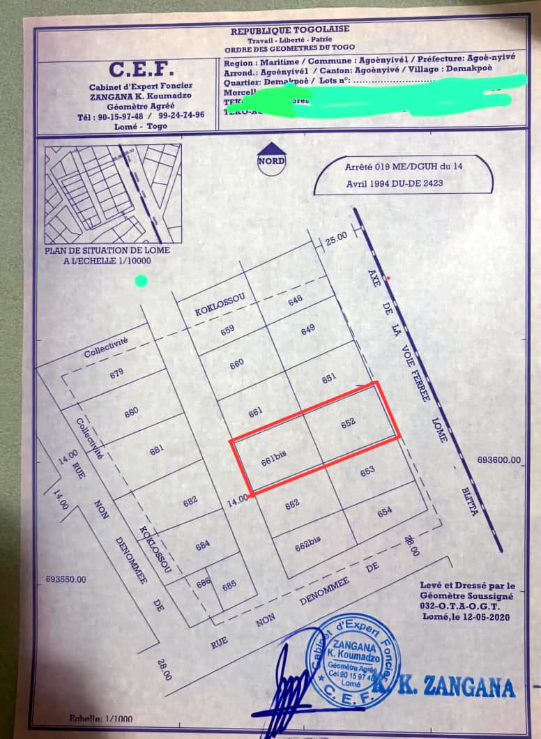 ANEHO-HABITATTerrain 2 lots collés avec titre foncier global , tres bien situés et fermés sur deux cotés dans un cadre charmant et résidentiel en face d'une voie de 50m ( rails ) et une voie de 14m à 300m du goudron juste derrière la pharmacie Excellence...