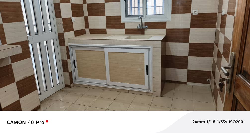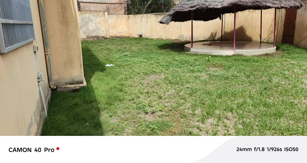 --3 chambres avec sanitaires internes... un grand salon ... une cuisine .. une dépendance avec cuisine africaine... un jardin ... un garage pour 3 voitures..