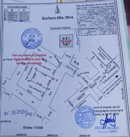 Terrain 1 lot avec un nouveau tampon OTR ... ( soit 638m2 ) ... très bien situé à 300m du goudron non loin du CEG de légbassito