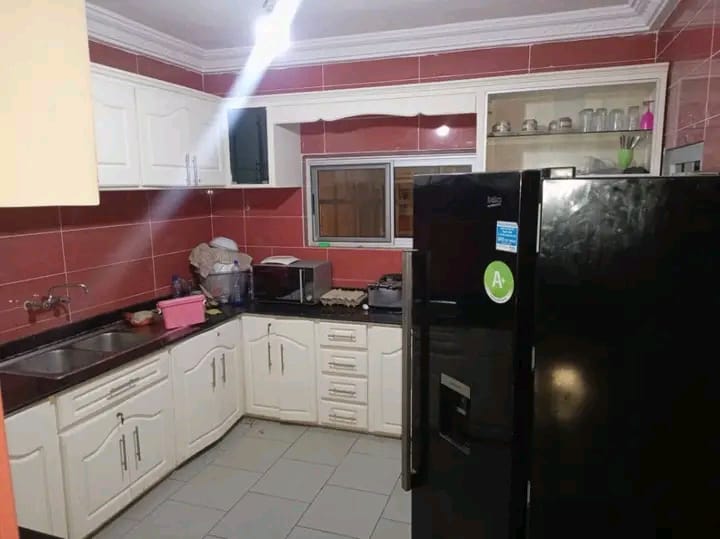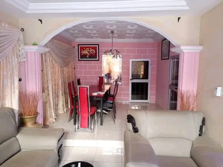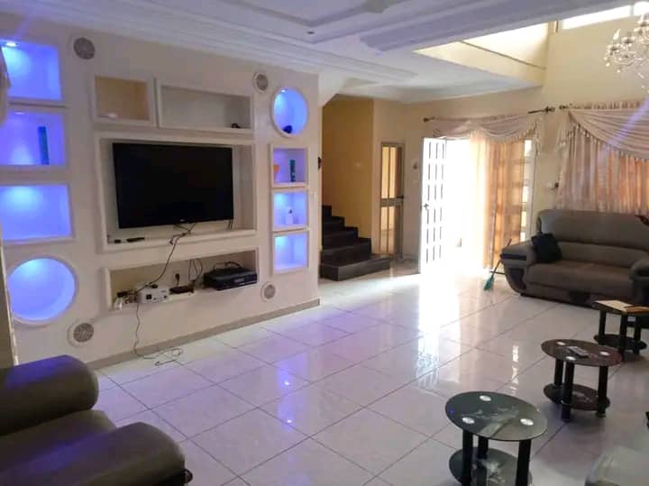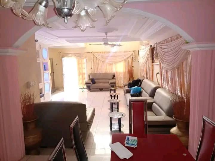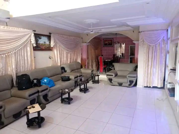 AU RDC : Un grand salon avec pose Télé en staffe , y compris les baffles, grande cuisine en marbe bien équipée ...2 chambres salon avec sanitaire + chauffe-eau ...terrasse ..une cour ....2 dépendances avec sanitaire ...garage 2 voitures ...