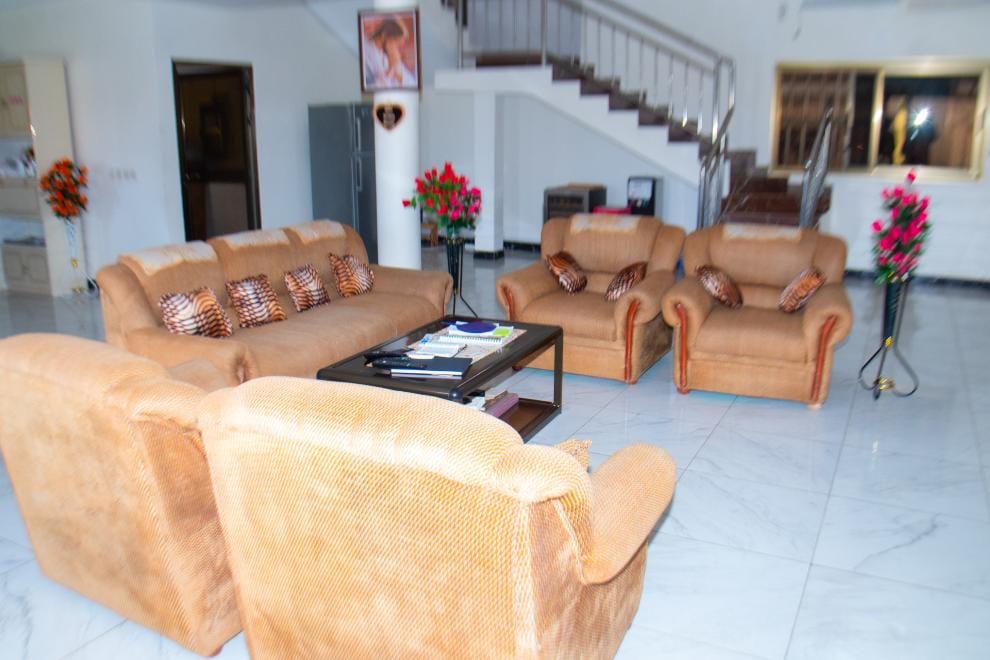 AU RDC : 3 grandes chambres autonomes ... un grand salon ... une grande cuisine ... terrasse ... piscine ... salle à manger .. un magasin ...garage pour 4 voitures ... grand jardin ... Barbélés de cloture électrique ....