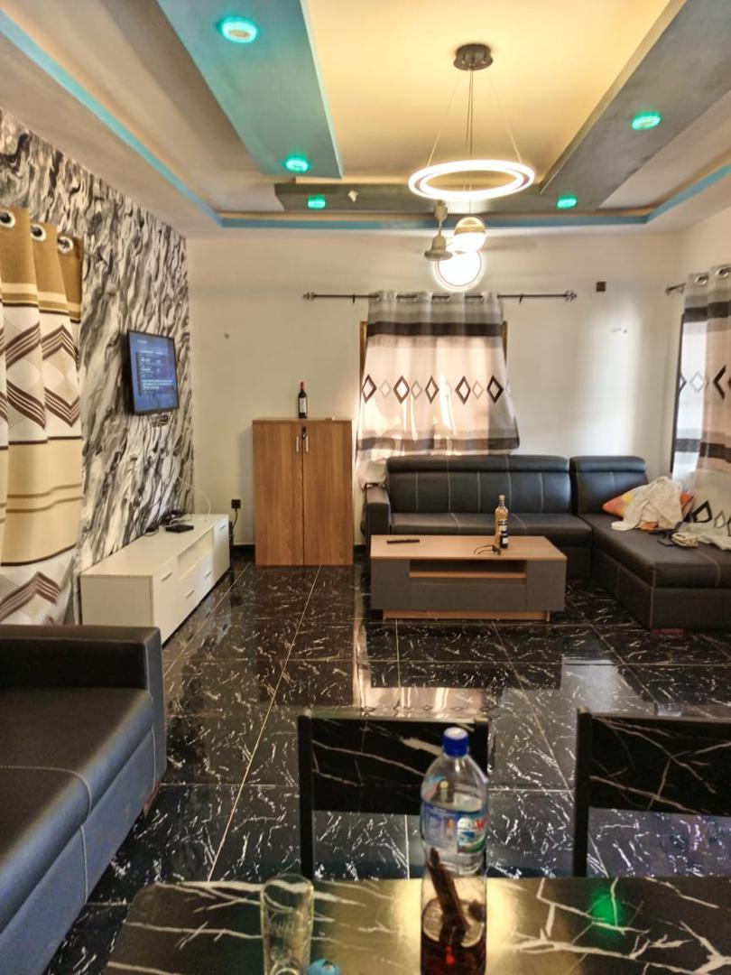 AU RDC :: 2 chambres salon wc douche interne avec cuisine ... garage .. wc visiteurs .. une boutique ..
