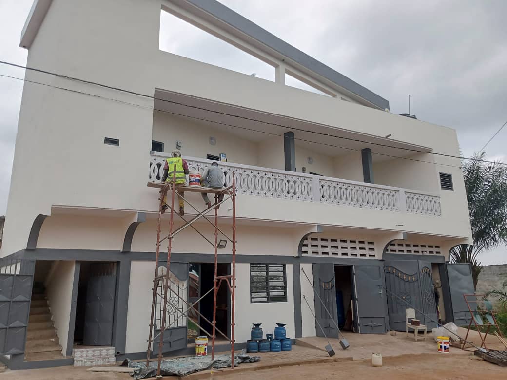 CaisseBelle villa duplex construite sur terrain 1/4 de lot bien située en angle de rue au bord de la grande voie à Adétikopé-Kladjémé.. non loin de l'hotel Le Coin.... un emplacement propice pour les sociétés et les Mocro-finance .... document Plan simple + mandat notarial ... composée de ::