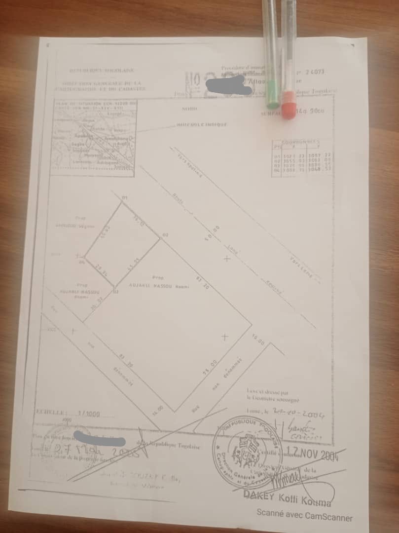 ANEHO-HABITATTerrain Stratégique de 1 lot et démi cloturé avec titre foncier ... Très bien situé en face du Grand Boulevard Lomé-kpalimé avec une Façade de 30m à Adidogomé Base EBOMAF ...