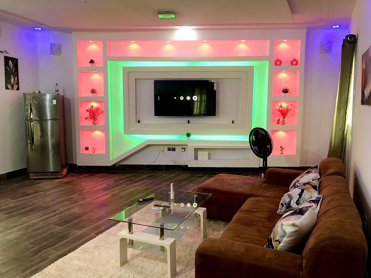 --2 chambres climatisées avec sanitaires internes ...... un salon .. une cuisine ... garage ... jardin ..