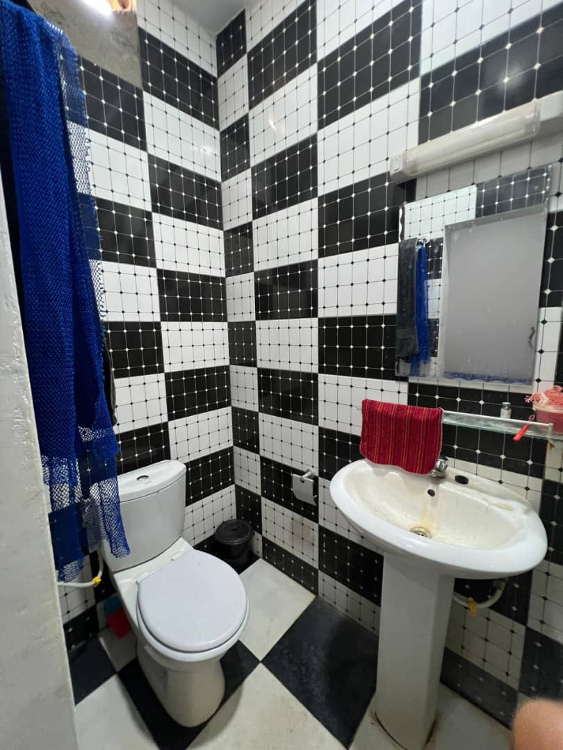 --2 chambres salon wc douche cuisine Américaine... une boutique ... garage une voiture ... Piscine flotante à l'étage ...wc visiteurs .. Forage ...
