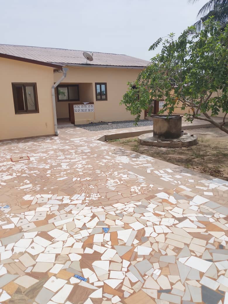 CaisseVilla construite sur terrain 1 lot ( 600m2 ) avec 3 tampons + titre foncier en cours ..bien située juste derrière la Mairie d'Adétikopé et composée de :::