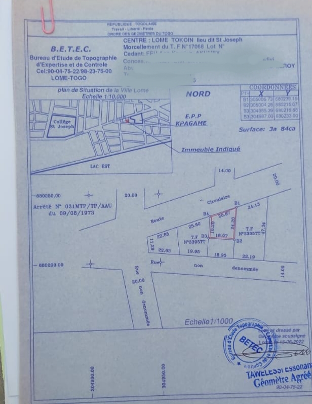 ANEHO-HABITATTerrain Stratégique de démi lot carré avec titre foncier ... Très bien situé en plein centre ville sur la route de l'Aéroport de lomé juste en face de la Banque BTCI en bordure du goudron....