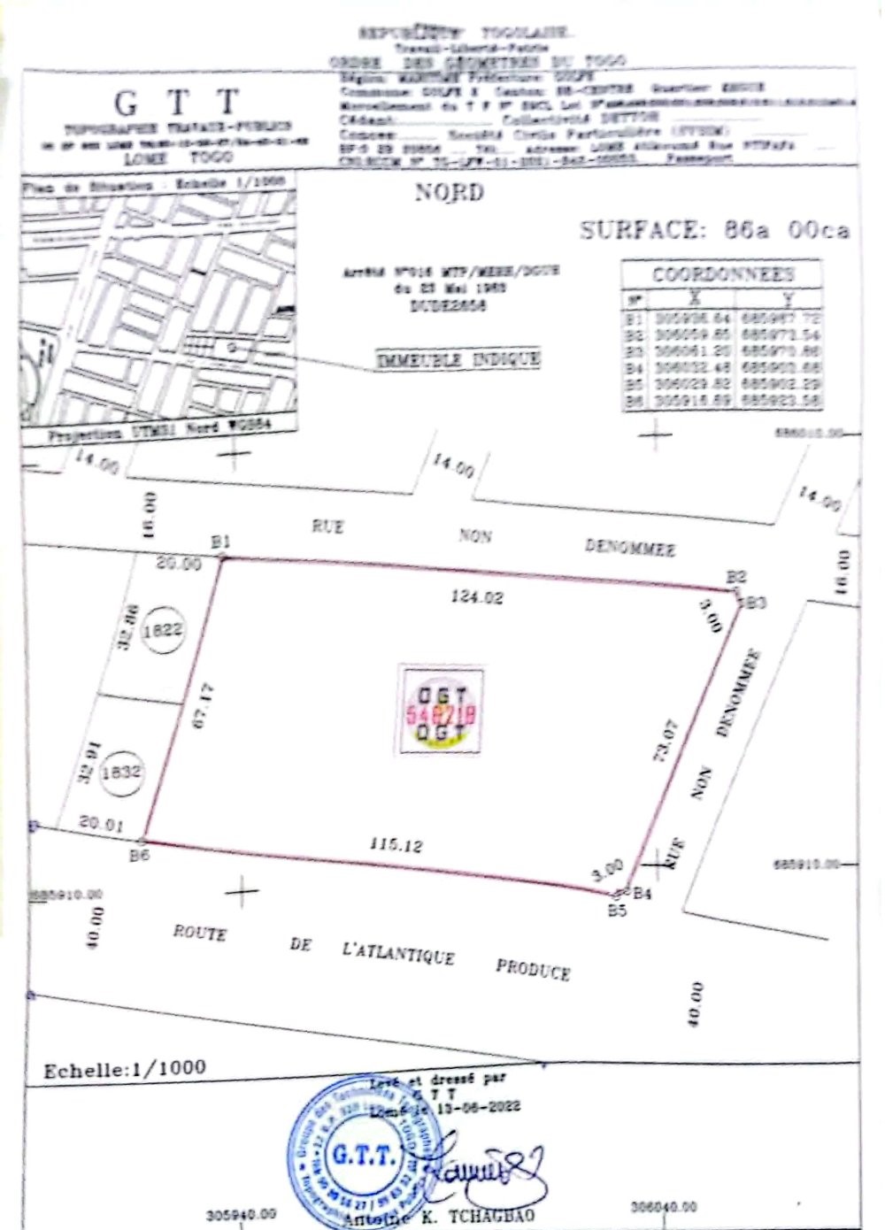 ANEHO-HABITATTerrain 14 lots collés cloturés avec un nouveau tampon OTR ... ( soit 8600m2 ) tres bien situés en plein centre de kégué à 200m du goudron du Boulevard Jean Paul 2 et de la station CAP et juste en face d'une grande voie de 50m...
