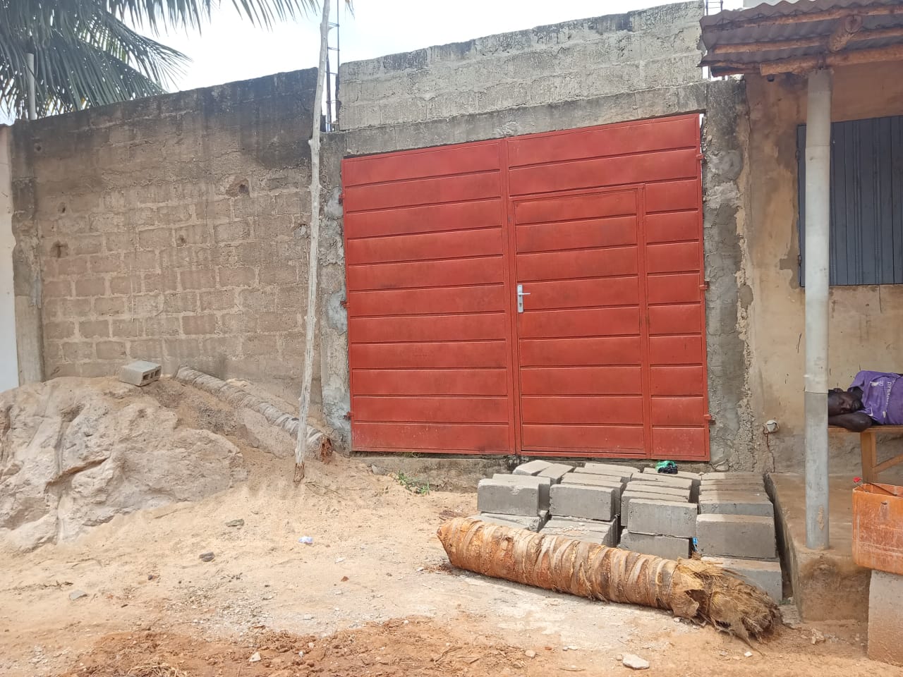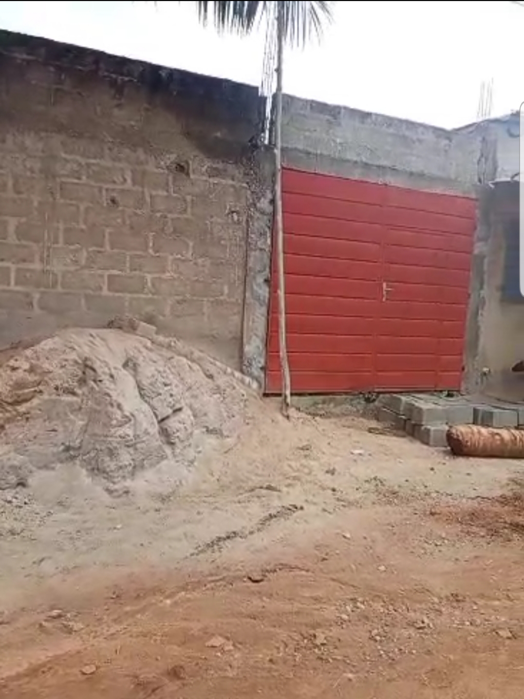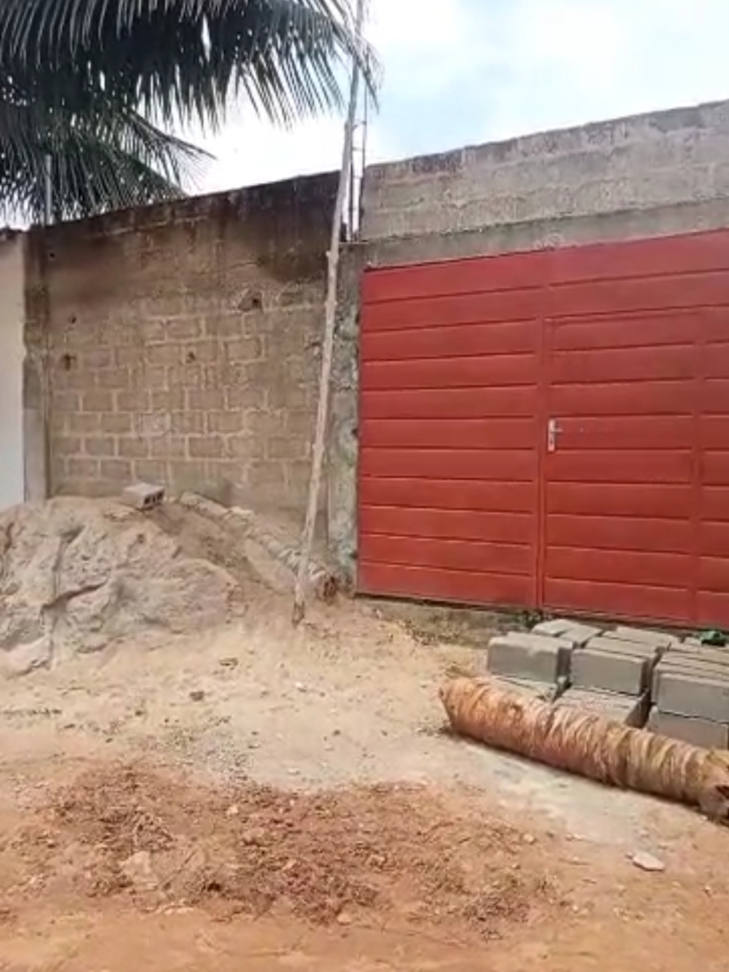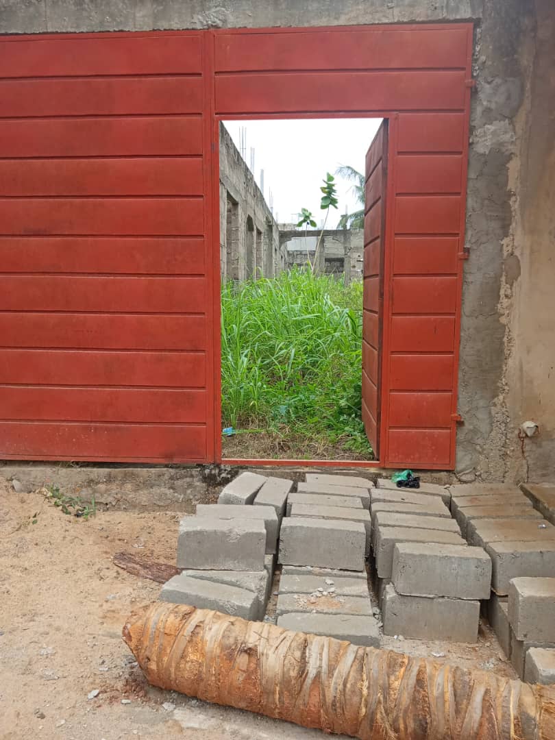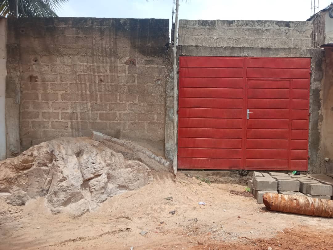 --4 chambres avec sanitaires internes chacune et terrasse ... un grand salon avec terrasse ... une cuisine .. ... un studio avec sanitaire interne ..... un petit magasin de rangement ... ... une cour ... un garage .... + la totalité des Briques pour la dalle déja disponible .....