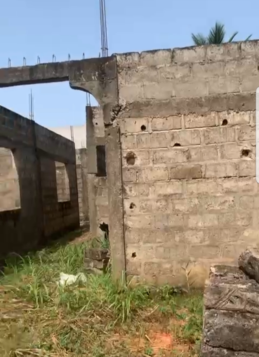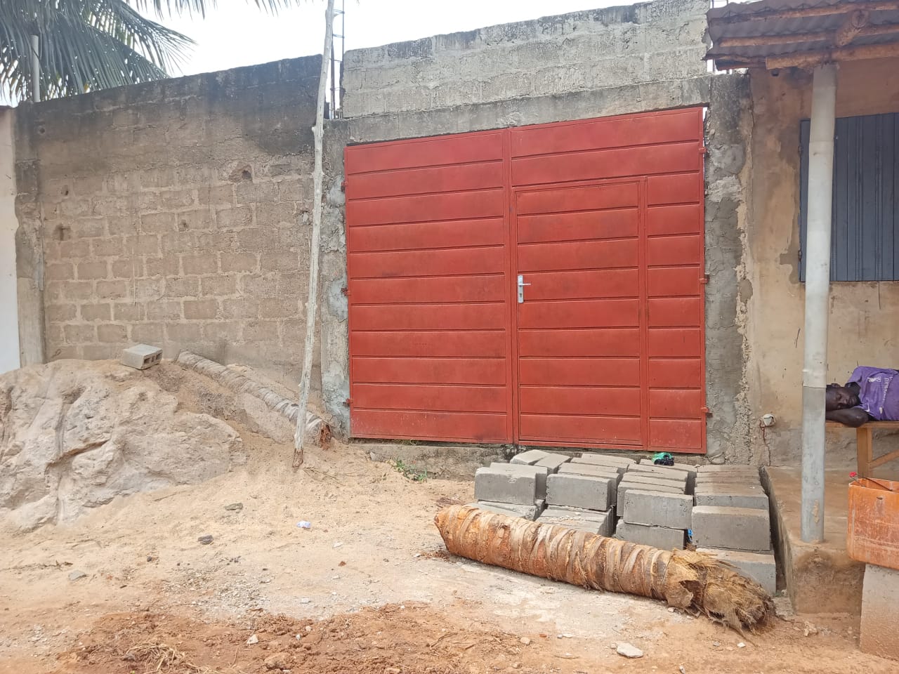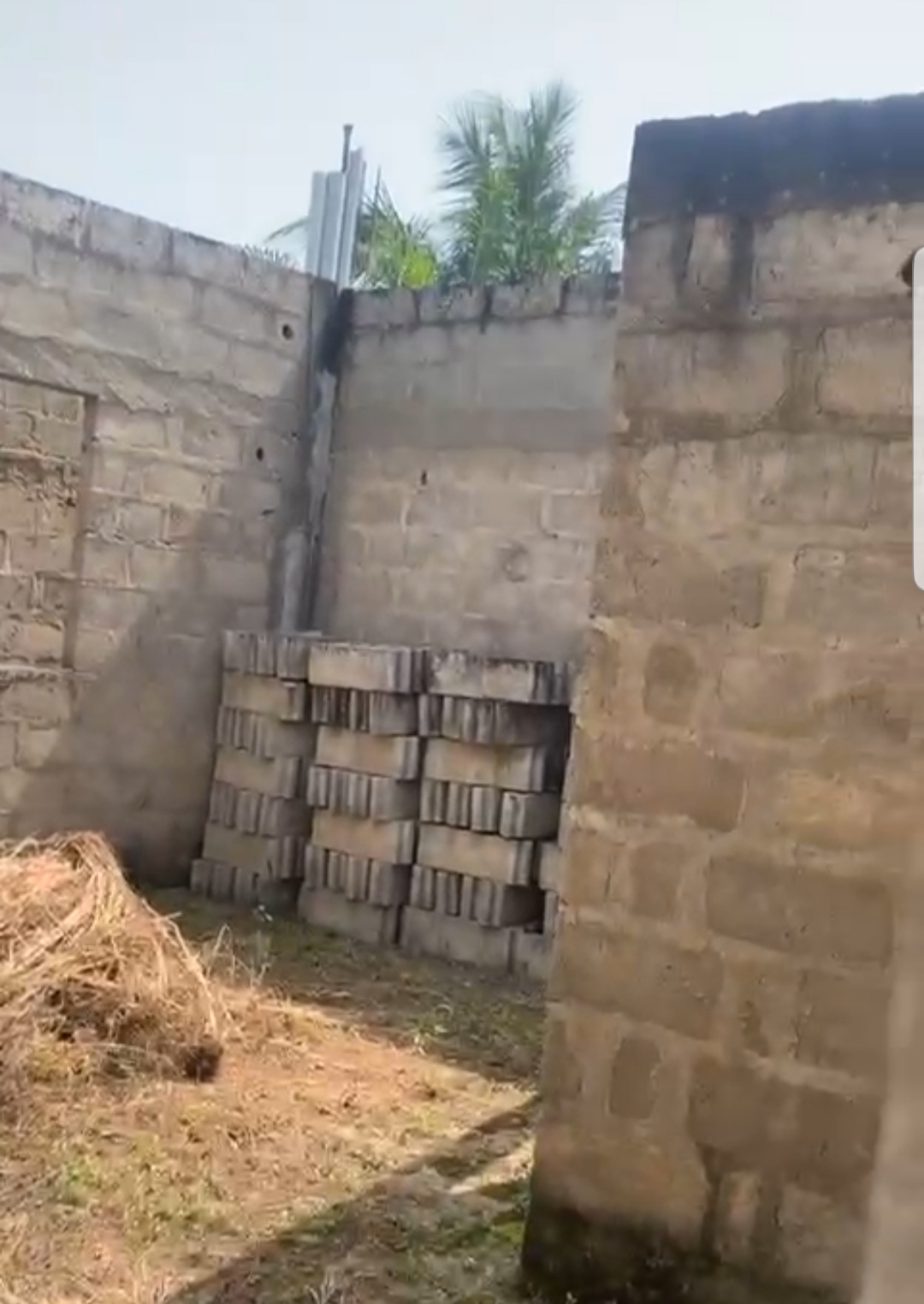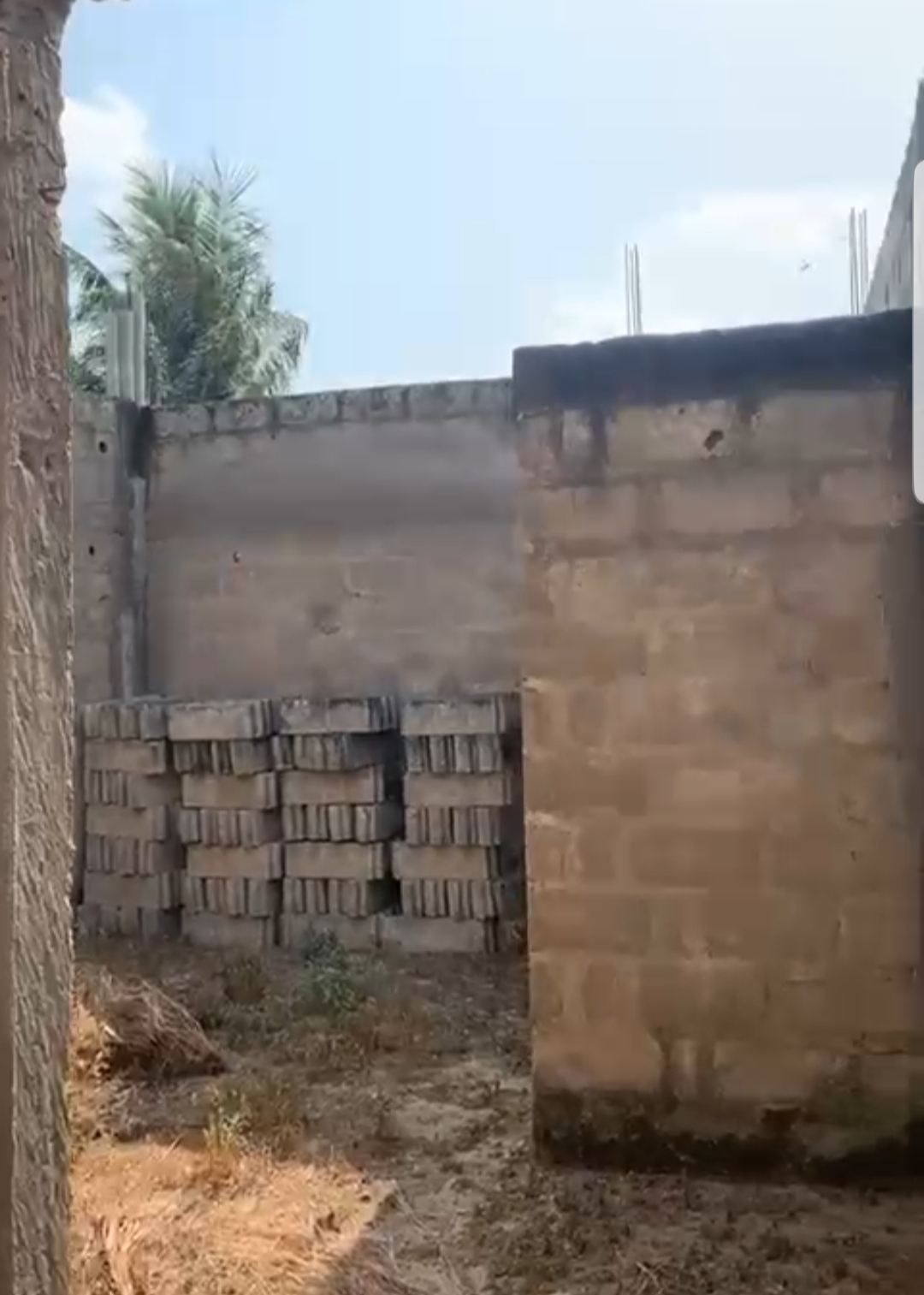 --4 chambres avec sanitaires internes chacune et terrasse ... un grand salon avec terrasse ... une cuisine .. ... un studio avec sanitaire interne ..... un petit magasin de rangement ... ... une cour ... un garage .... + la totalité des Briques pour la dalle déja disponible .....