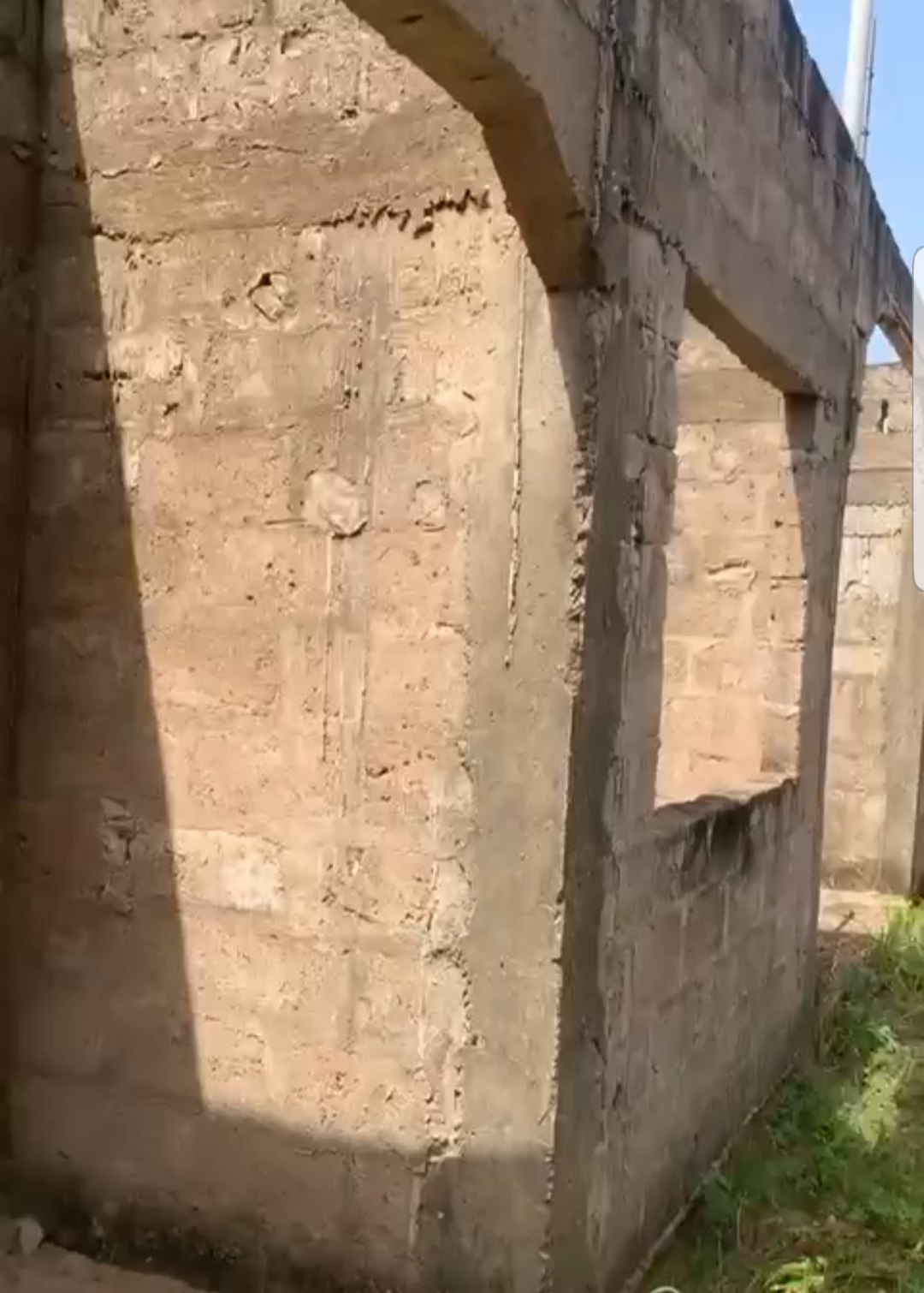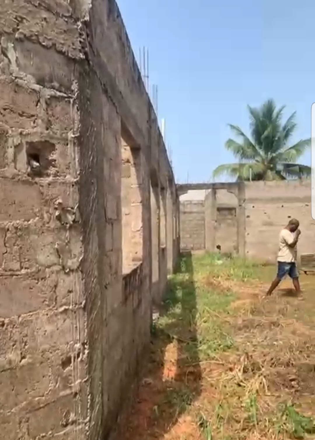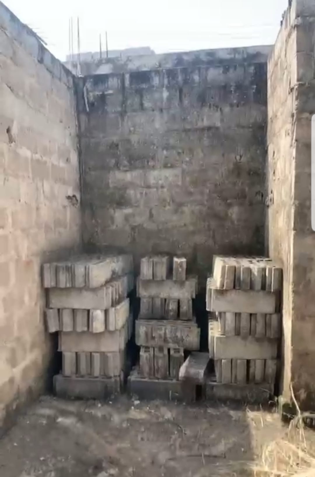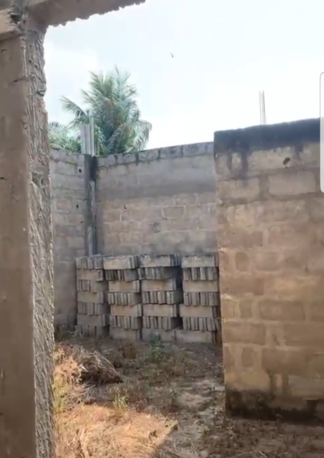 --4 chambres avec sanitaires internes chacune et terrasse ... un grand salon avec terrasse ... une cuisine .. ... un studio avec sanitaire interne ..... un petit magasin de rangement ... ... une cour ... un garage .... + la totalité des Briques pour la dalle déja disponible .....
