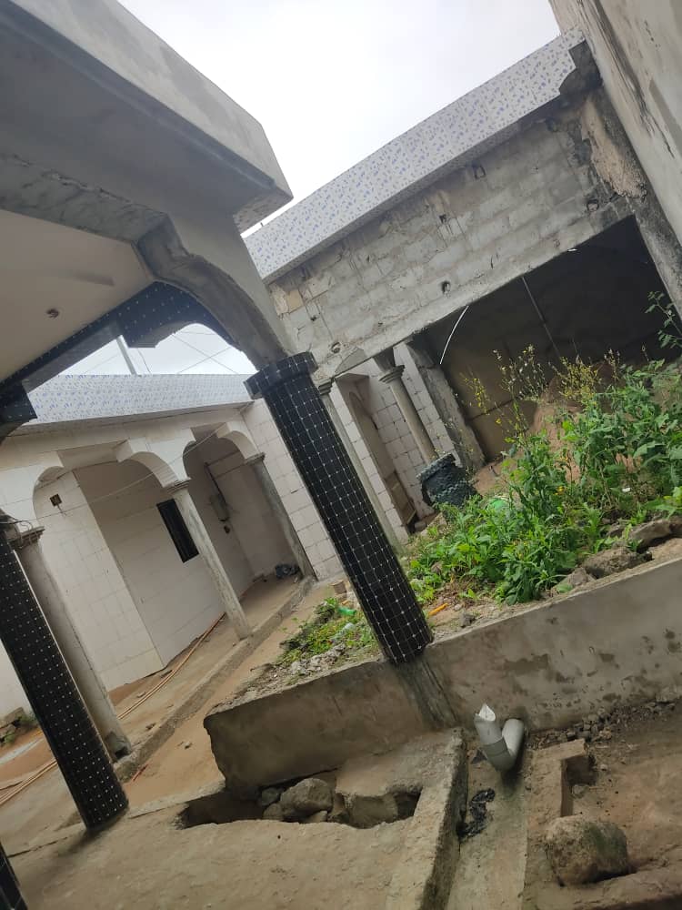 CaisseVilla dallée construite sur terrain démi lot ( soit 354m2 ) avec 2 tampons ... En cours de Finition en plein centre D'Avépozo dans la zone D'Agboyibo non loin de la maison d'Agassa et composée de ::