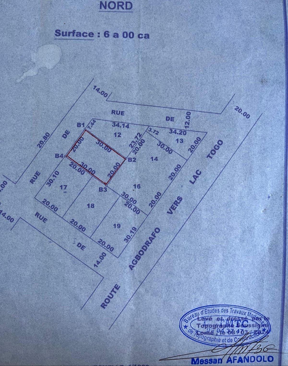 ANEHO-HABITATTerrain 1 lot 3/4 cloturé sur 2 cotés avec nouveau tampon OTR .... Très bien situé à 100m du Lac-Togo dans la zone Du ROYAUME de King MESSANH dans une zone Résidentiel en angle de rue ...... egalement entouré de 3 hotels et restaurant .... idéal pour une Habitation paisible..... voir plan , Lot 12 et 15