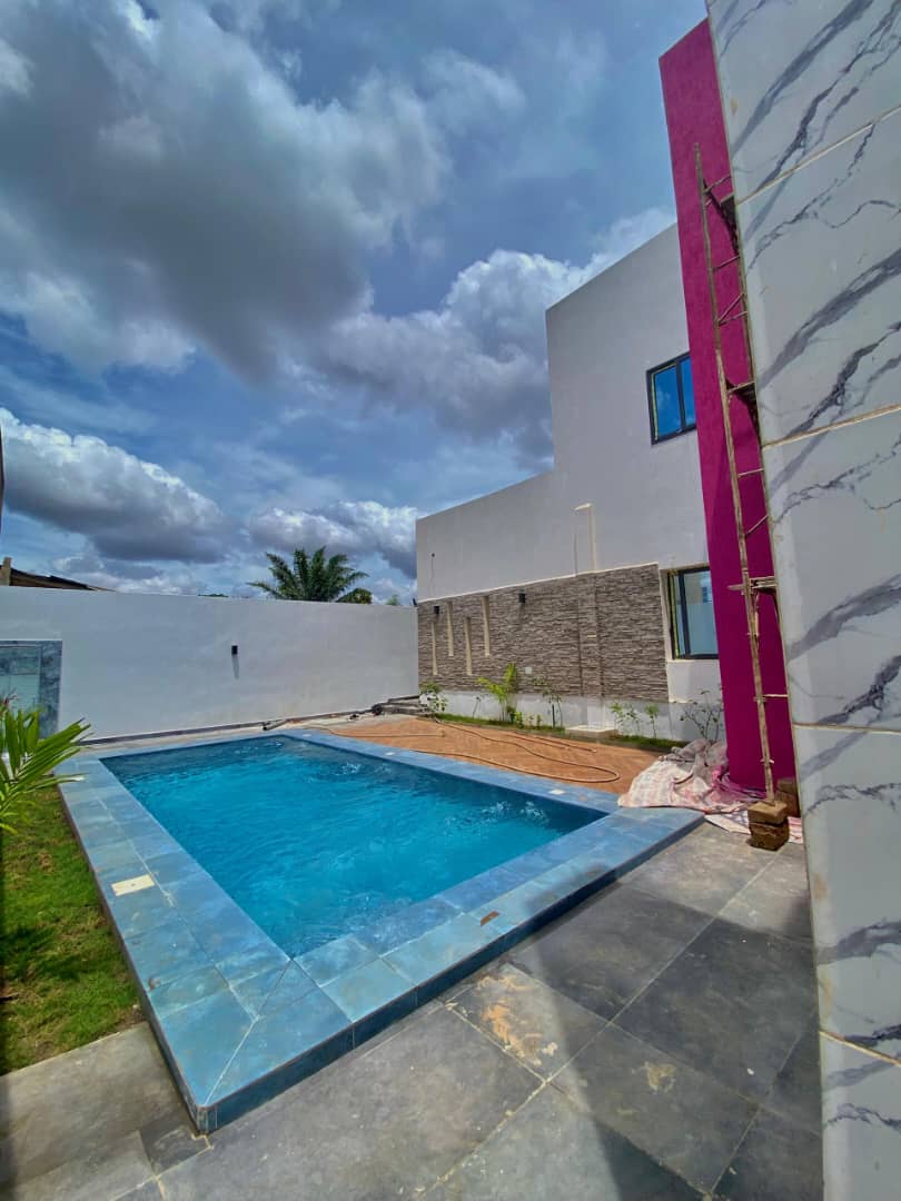 Au RDC :: 2 grandes chambres autonomes avec placards ... un grand salon avec salle à manger... une très belle cuisine moderne sémi meublée avec magasin ...un débarras.... une boyérie avec sanitaires.... une terrasse ... un très beau jardin ... un garage pour 2 voitures ... une piscine