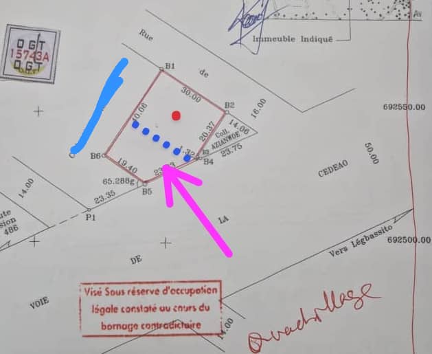 Terrain 3/4 de lot avec un nouveau tampon OTR ... Très bien situé en face du goudron du Contournement.... à légbassito Avinato..