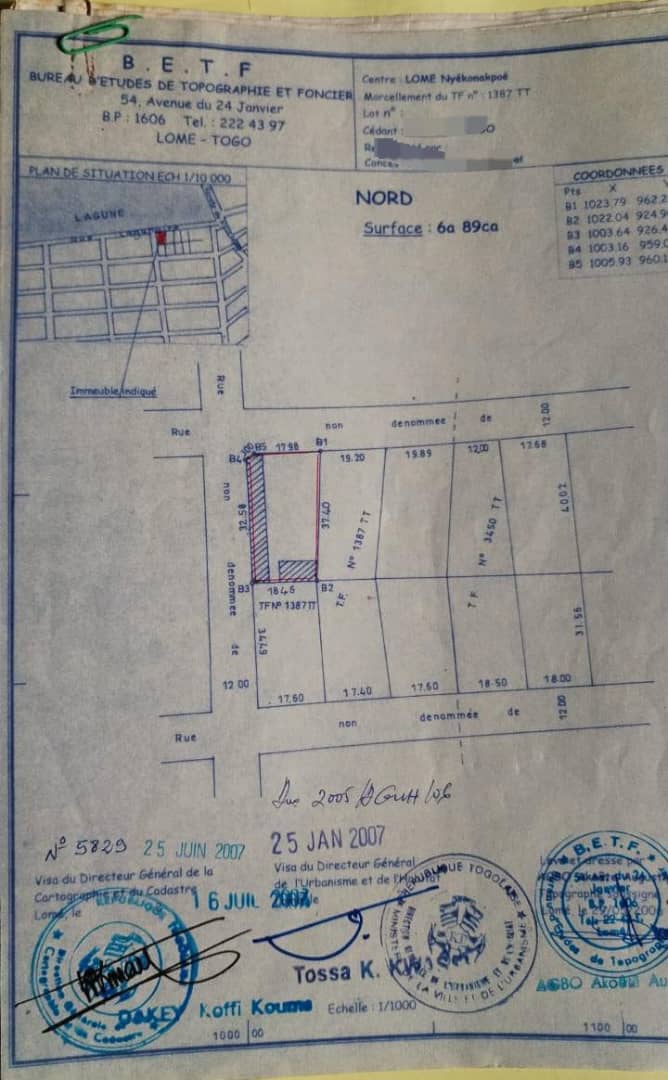 Baguida-AfanoukopéTerrain 1 lot cloturé ( soit 689m2 ) avec titre foncier global ... très bien situé en plein centre ville à Nyékonakpoè juste à 100m de la station T-OIL et comportant une maison de location à modifier ou à Raser si bésoin...