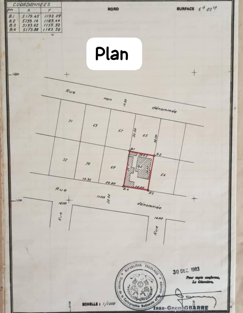Baguida-AfanoukopéTerrain 1 lot cloturé avec titre foncier .. très bien situé en plein centre ville juste derrière la station d'essence SOMAYAF de Noukafou et comportant quelques vieilles constructions à Raser ...