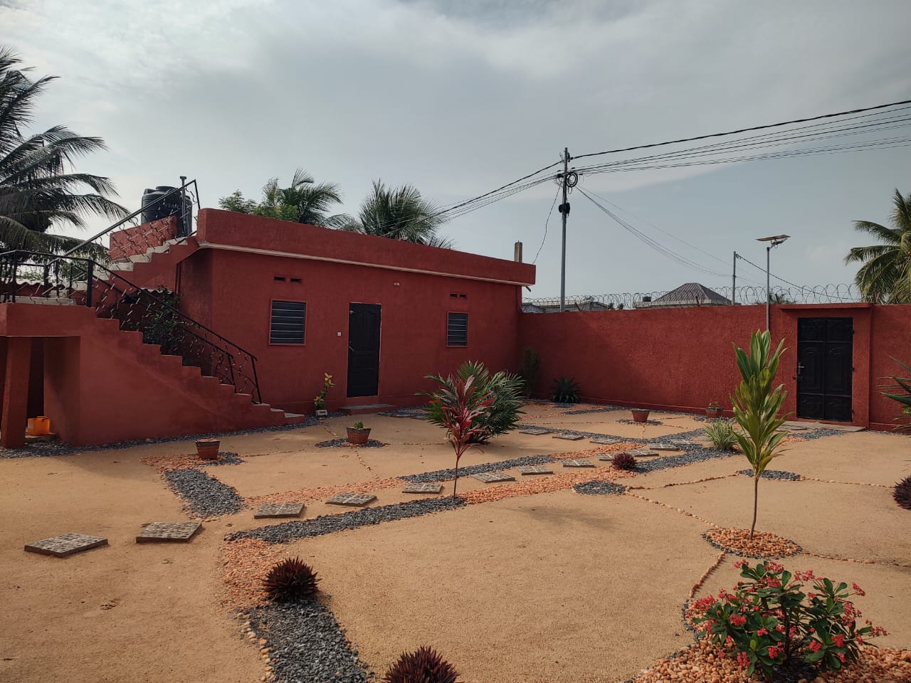 --2 chambres climatisées.. avec leurs sanitaires internes et chauffe-eau ... un salon ventilé .. une cuisine ..une terrasse ... un wc visiteurs ... un garage dallé pour 2 voitures ... une grande cour ...