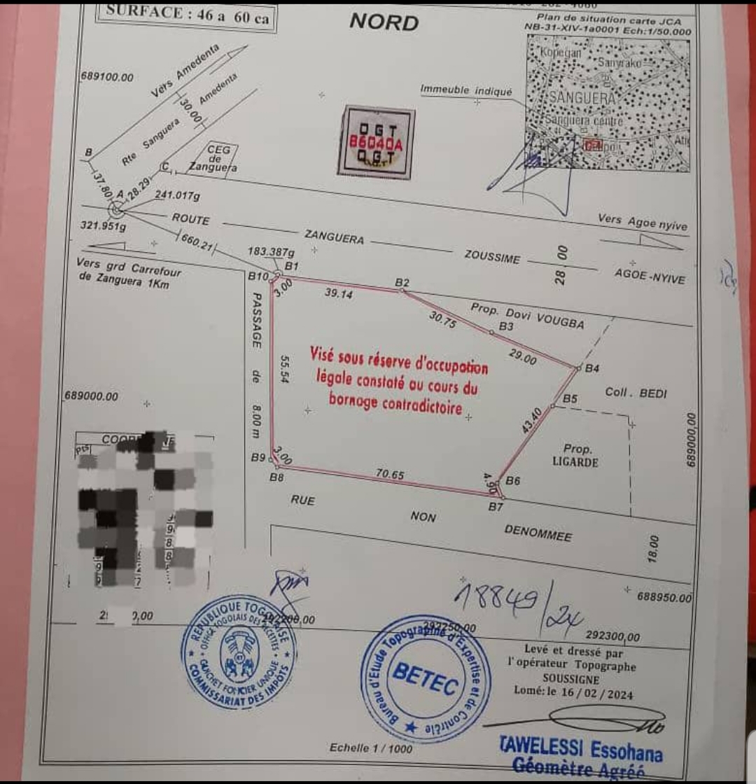Baguida-AfanoukopéTerrain 10 lots collés avec titre foncier en cours ... Très bien situés en Bordure de la grande voie de 28m de Zanguéra vers Zossimé et à 1km du goudron Lomé-kpalimé ou au rond point du Marché de zanguéra ...
