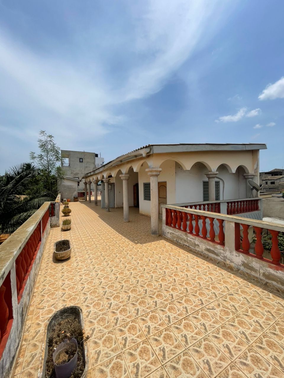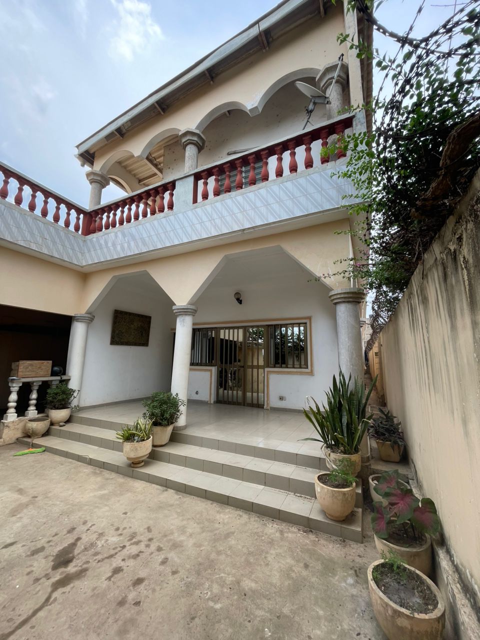 CaisseBelle villa duplex construite sur terrain démi lot avec titre foncier... Très bien située en plein centre ville au bord de la grande voie à Avédji Gakpoto et composée de :::