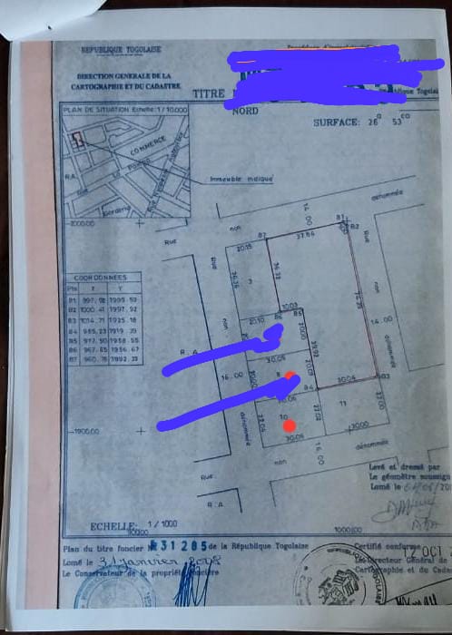 Terrain 1 lot avec titre foncier ... Très bien situé en plein centre ville... dans un quartier calme à Wonyomé , non loin de l'état civil de Sagbado....