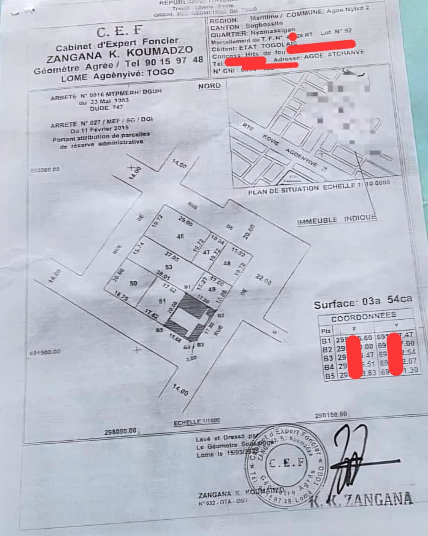 Baguida-AfanoukopéTerrain démi lot carré cloturé avec titre foncier ... très bien situé en angle rue en pleine zone résidentielle propre à Agoè Sogbossito tout proxche du Supermarché DAUPHINE à 300m du goudron.... et comportant une vieille construction à Raser ....