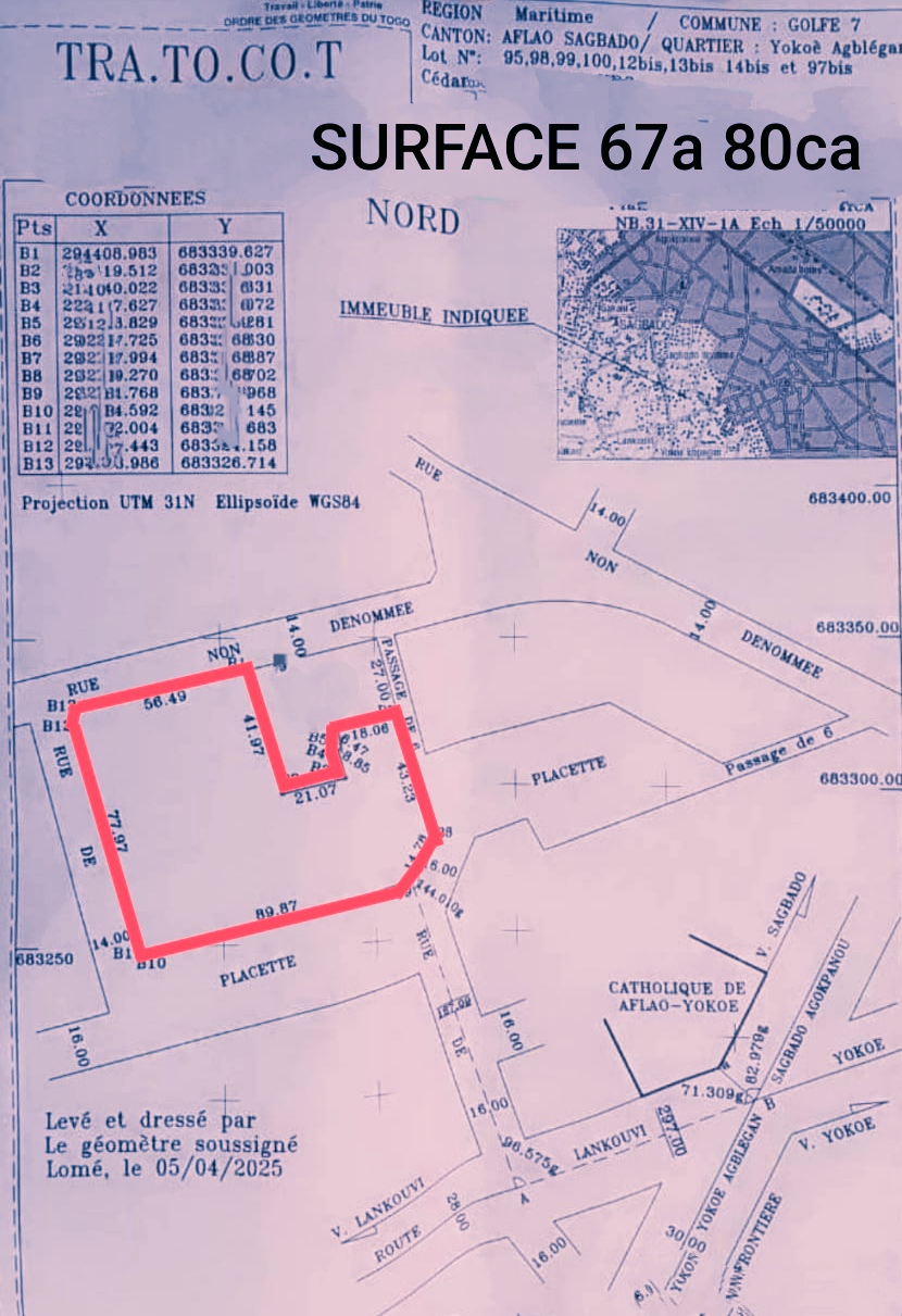 Baguida-AfanoukopéTerrain 11 lots collés avec titre foncier .... bien situés en angle de rue à Adidogomé Yokoà Agblégan..... tout proche de l'église Catholique....