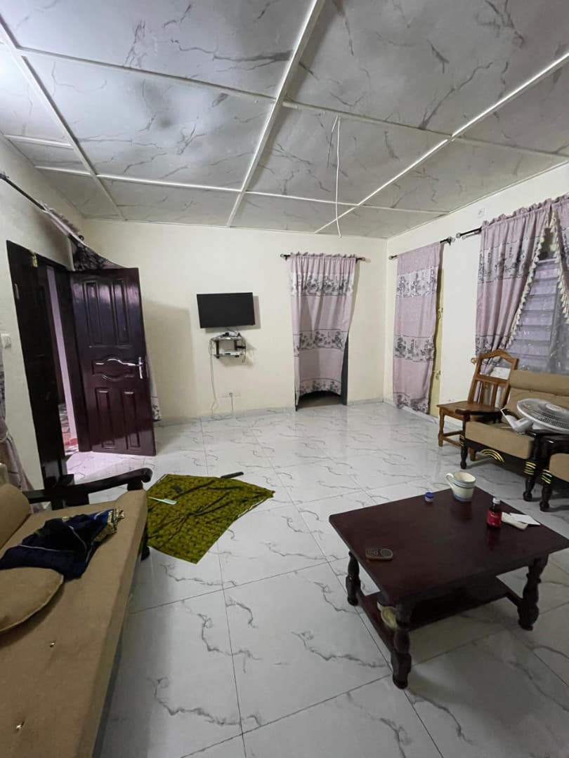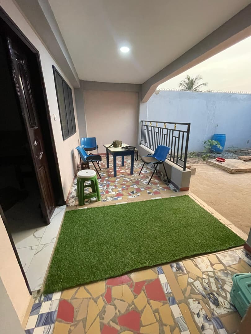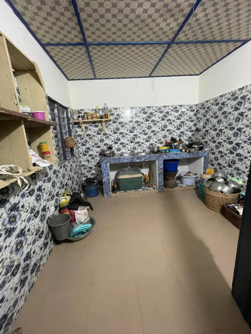 --Une grande chambre salon wc douche interne avec terrasse bien propre, carrélé, tuilé, plafonnné...une grande cuisine. 2 dépendances bien carrélés tuilées et plafonnées avec wc douche externe ...Une Boutique dallée ... un garage pour une voiture ... Eau forage et cash power disponibles ..
