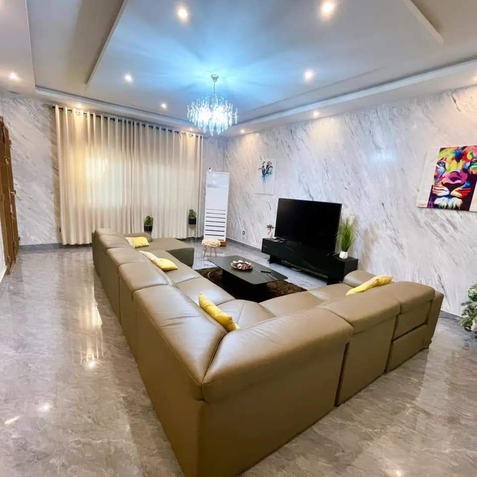 Superbe villa duplex nouvelle construction sur terrain 3/4 de lot ( 450m2 ) avec titre foncier ... bien située tout proche de l'hotel 02 ... en plein centre de Zanguéra... tout meublé.