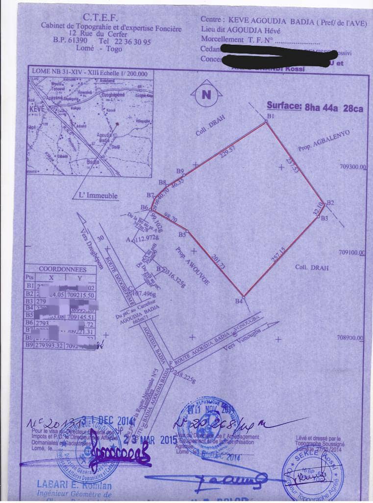 ANEHO-HABITATTerrain 5 hectares et démi avec titre foncier en cours ( Bornage déja éffectué ) ... situés à 4km du goudron Lomé-Kpalimé...