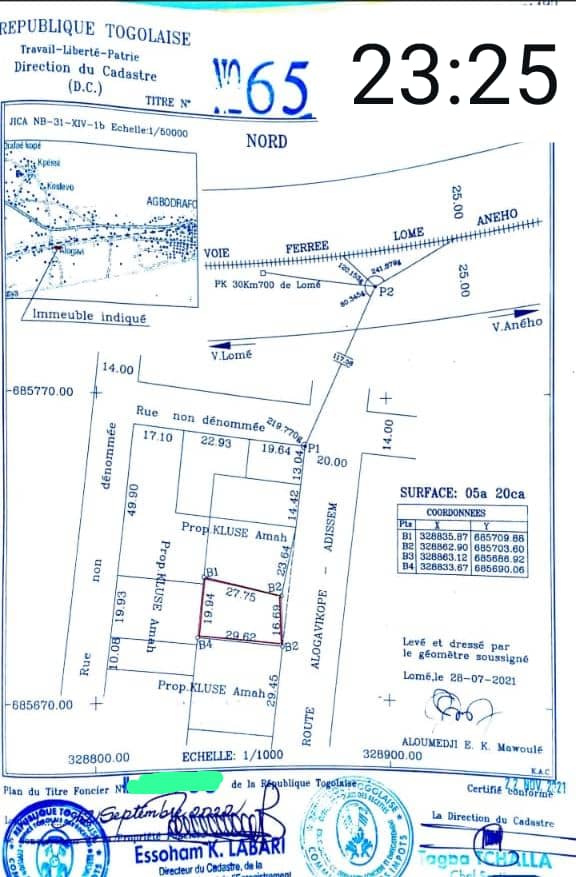 ANEHO-HABITATTerrain 1 lot avec titre foncier ... situé du coté plage de la ville et non loin du goudron de la nationale numéro 2 Lomé-Aneho....