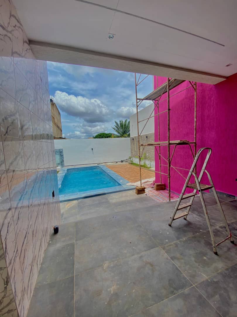 Au RDC :: 2 grandes chambres autonomes avec placards ... un grand salon avec salle à manger... une très belle cuisine moderne sémi meublée avec magasin ...un débarras.... une boyérie avec sanitaires.... une terrasse ... un très beau jardin ... un garage pour 2 voitures ... une piscine