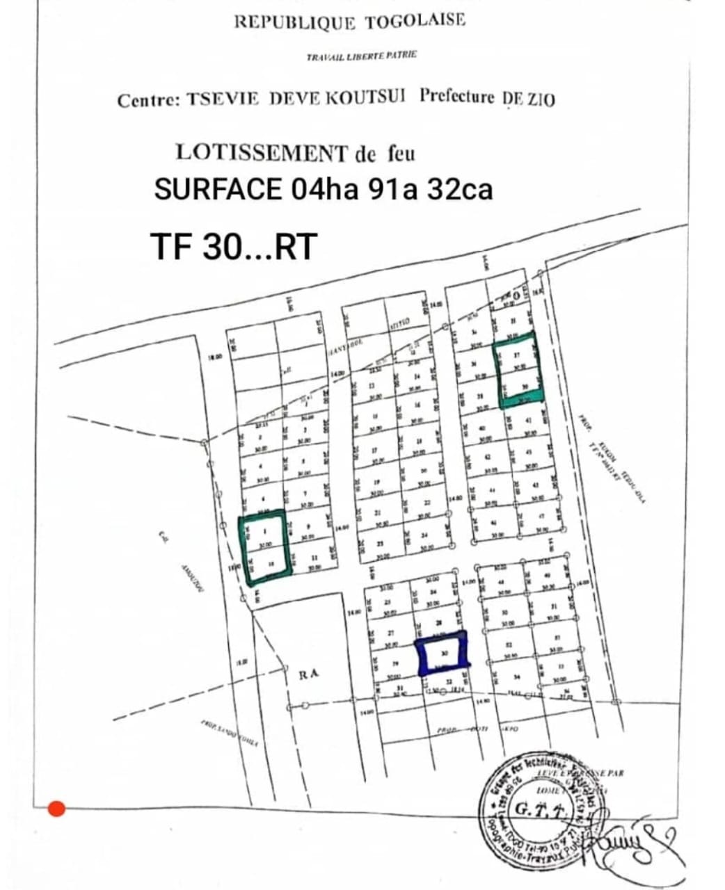 Baguida-AfanoukopéTerrain 50 lots collés collés avec titre foncier ... tres bien situés à 900m du goudron de la nationale numéro 1 à tsévié dévé koutsui, non loin du pont bascule....