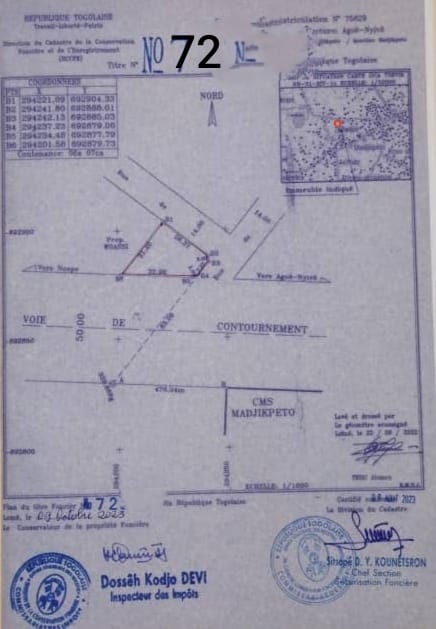 Baguida-AfanoukopéTerrain 55 lots collés avec titre foncier ... Très bien situés en Bordure du goudron de la nationale numéro 1 à tsévié dédéké , non loin de la douane..