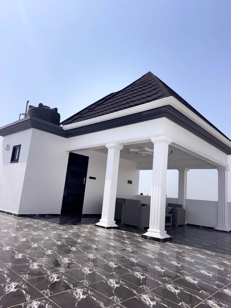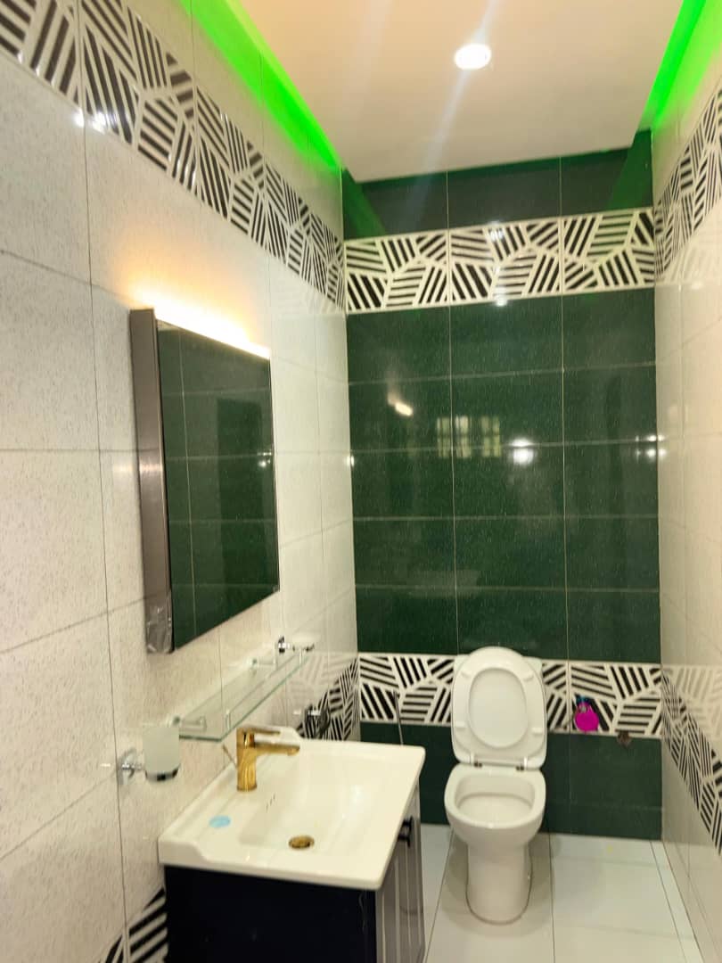 Belle villa duplex construite sur terrain 1/4 de lot ( soit 200m2 ) avec titre foncier en cours ( réquisition déja disponible ) ... tres bien située en plein centre ville tout près de le Mairie de baguida et composée de ::