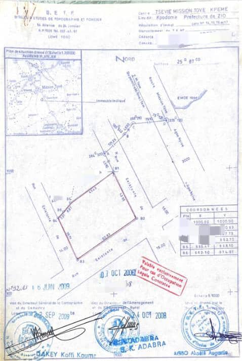 Baguida-AfanoukopéTerrain 4 lots 1/4 collés avec 3 tampons ... tres bien situés en angle de rue dans le quartier la Paix à 400m de la grande voie de Mission Tové...